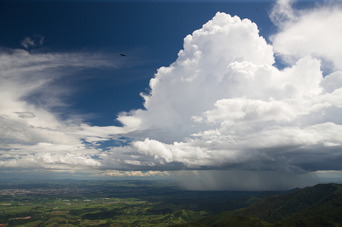 A maioria dos eventos atmosféricos observáveis está relacionada ao ciclo da água (por exemplo, formação de nuvens, trovões e arco-íris) – hidrosfera – e à dispersão da radiação solar – razão pela qual o céu é azul em luz intensa e colorido quando o sol está baixo, relativamente mais próximo do horizonte. As cores produzidas pela dispersão da luz dependem do tamanho das partículas na atmosfera.