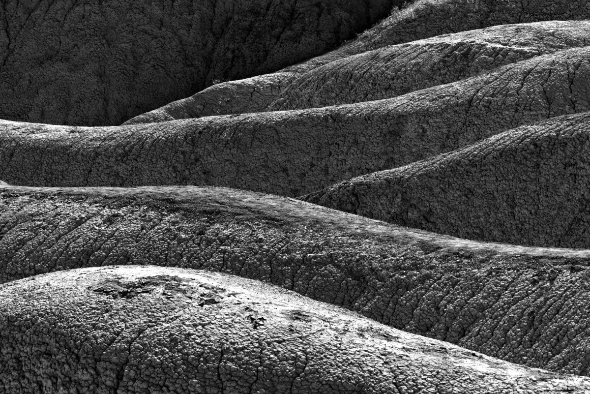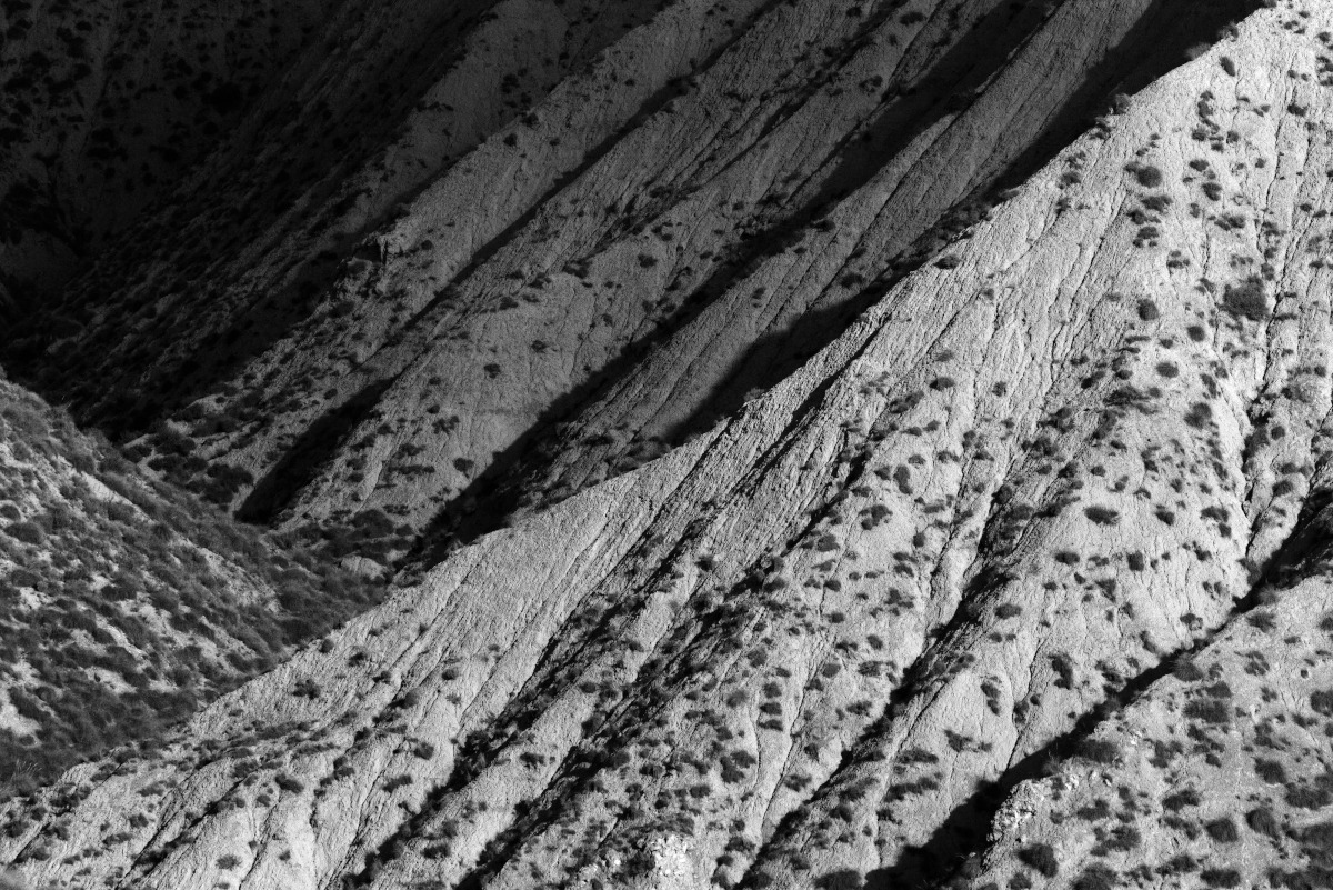 On a technical level, it appears that you know well what to do with the monochrome format in order to bring that distinct aesthetic to the edge without becoming overwhelmingly dramatic. Shadows and highlights in your images are not just visual qualities of light; are narrative devices that allow the visual forms to obtain content and meaning. The lack of color also defines the approach taking it away from the literal depiction and documentation of the subject without cutting the bond with reality. The monochrome format, as you have treated it, suggests a poetic interpretation of the land you investigate, a kind of memorialization like Ansel Adams once did for Yosemite national park. It is not that you present these mountains as monuments but the distinct gestures and textures create a sense of importance and emergency about the future of this place.